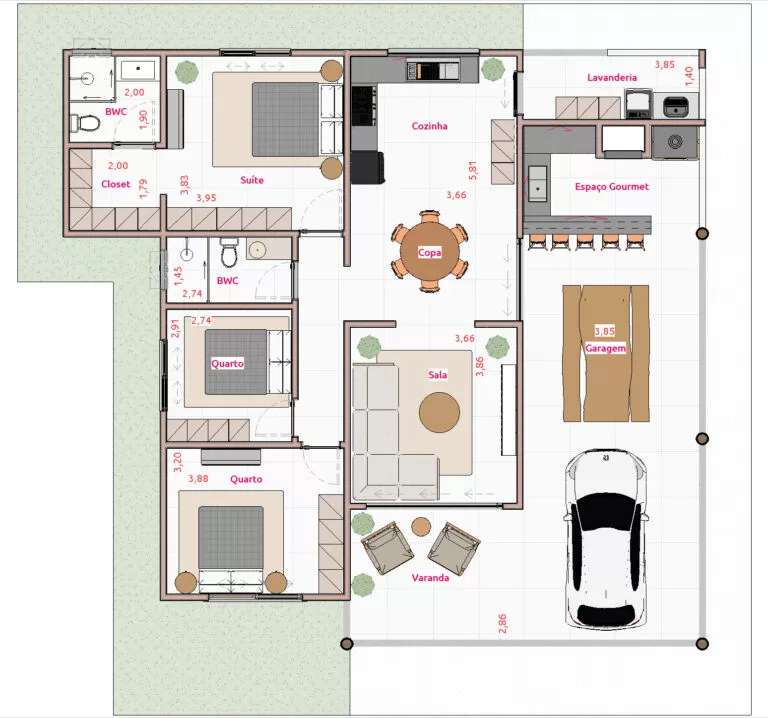 Antes da compra, é importante verificar se o tamanho do projeto escolhido é compatível com o seu terreno — ou seja, se as dimensões da casa cabem dentro dos limites do lote, respeitando recuos e áreas obrigatórias.