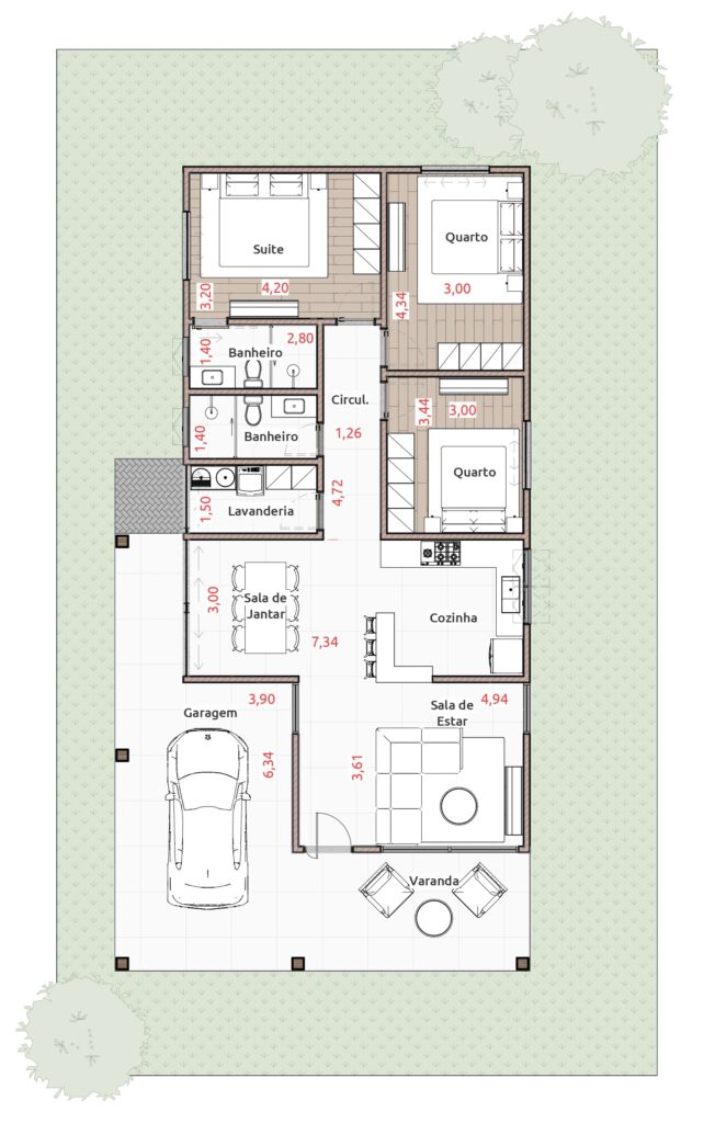 Outro ponto essencial é que o terreno precisa ser plano ou nivelado, pois nossos projetos não são indicados para terrenos em aclive ou declive.